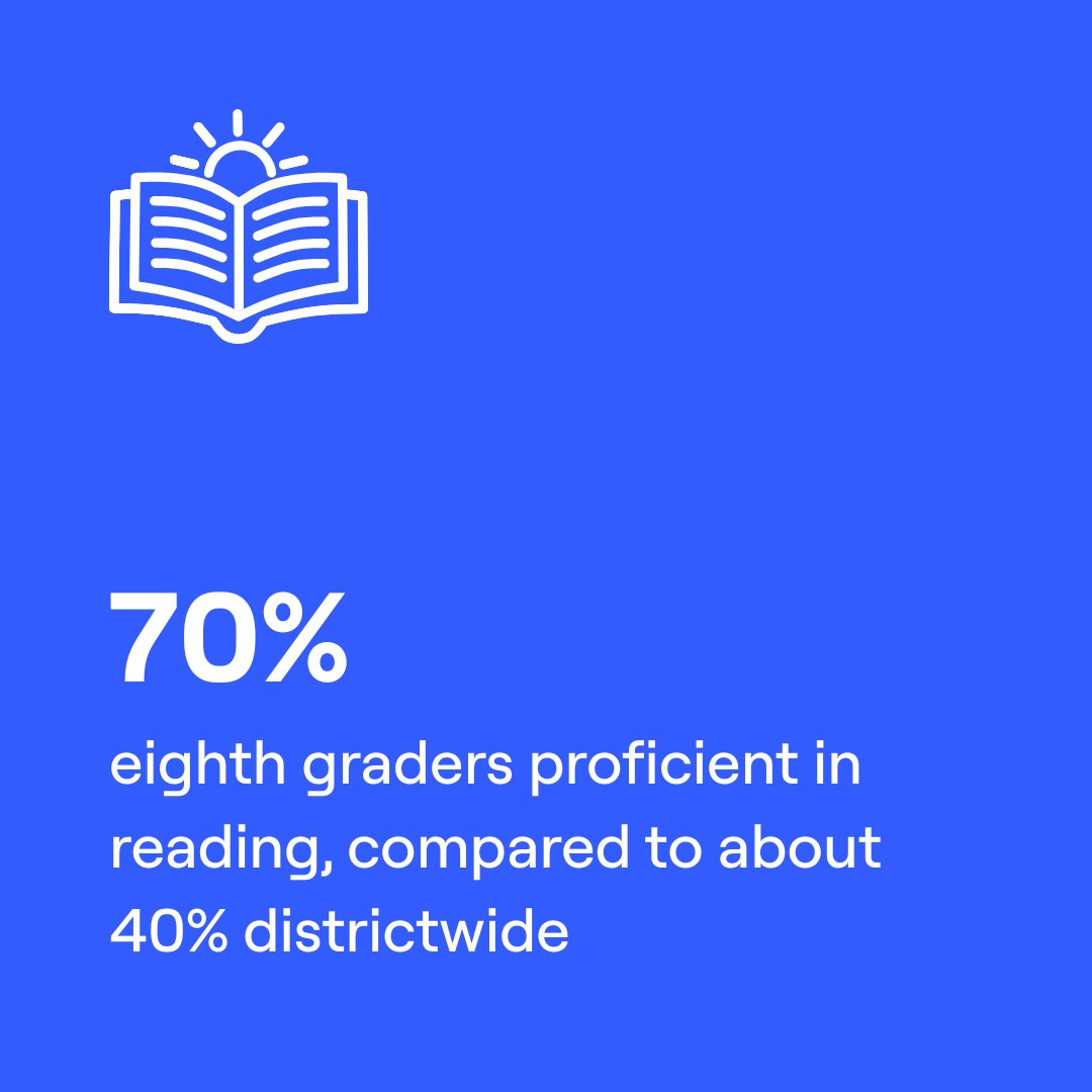 In the 2023-24 school year, 80% of our portfolio schools matched or outperformed comparable traditional public schools in reading; 75% did so in math.